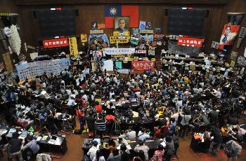 (台灣)台灣反服貿示威持續近3週,反服貿團體昨舉行人民議會,商討《兩岸協議監督條例》,結果將於本週遞交行政院及立法院。另方面,繼美國國務院亞太助理國務卿羅素(Daniel Russel)以要“負責任地運用自由”批反服貿學生後,台灣總統馬英九週三又將與美方視像通話。