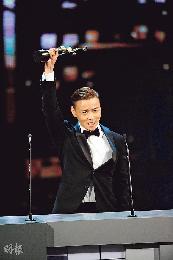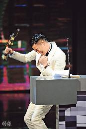張家輝打低梁朝偉奪最佳男主角,於台上興奮忘形。(圖:香港明報)