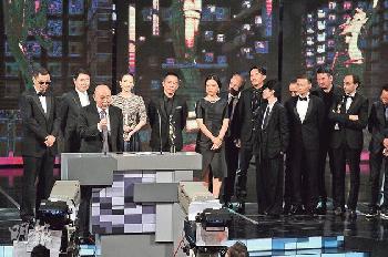 《一代宗師》奪12項大獎,團隊在台上分享榮耀。(圖:香港明報)