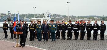 普汀的克里米亞閱兵之行並沒事先正式公佈。他昨天午後到達克里米亞塞瓦斯托波爾軍港,乘軍艦觀看海軍空軍閱兵儀式,並發表演說,然後與二戰老兵一起向納希莫夫廣場“1941-1942年塞瓦斯托波爾保衛者紀念碑”獻花圈。隨後,普汀訪問塞瓦斯托波爾聖弗拉基米爾大教堂,傍晚出席音樂會。