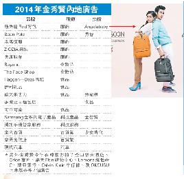 昨天財經雜誌《福布斯》公佈今年全球最有價值百大品牌,其中騰訊以第14位佔亞洲之首,同日騰訊亦宣佈金秀賢擔任旗下移動支付安全服務手機管家代言人,令金秀賢在今年不足6個月內簽了17個內地廣告合約,除可口可樂、Samsung全系列電子產品及德苵朱古力等外國品牌,還有森馬便服、伊利乳品及奧康鞋業等內地出品。