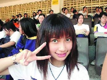 學生妹Baby厚唇V字手勢賣萌,十分趣致。(網上圖片)