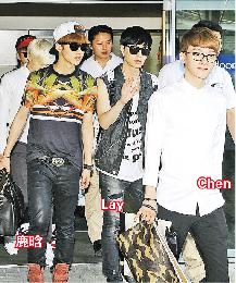 昨午11名成員包括:Tao、Suho、Xiumin、伯賢、鹿晗、Lay、Chen、Kai、世勛、D.O.、燦烈來港準備兩場演出,機場特別通道外早已聚集逾300名粉絲霸靚位迎接偶像,警員及機場人員駕起鐵欄維持秩序。