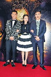古天樂、周迅、劉青雲打扮得靚靚出席《竊聽風雲3》首映禮。(圖:香港明報)
