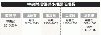 中央財經領導小組是中共的機構,主管國內財經金融政策,一般主要成員包括國務院總理、央行行長、金融監管機構負責人、發改委主任、國資委主任等國務院成員,組長一般由總理擔任。習近平出任這一職位,打破了中共過往16年的慣例。上一次兼任此組組長的中共總書記是江澤民,他在1998年把這一職位交給當時的新任總理朱鎔基。在胡錦濤擔任總書記的10年間,總理溫家寶一直是財經領導小組的組長,直至去年3月退休。