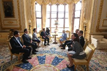 (英國)英女王伊麗莎白二世昨日會見到訪英國的中國總理李克強,並與他及其夫人程虹寒暄。李克強並與英國首相卡梅倫會談,雙方會談後見記者,宣佈會簽署總值140億英鎊的經貿合約。卡梅倫提到,今年是中英聯合聲明簽署30週年,中英兩國承諾會依照一國兩制的原則,保持香港繁榮穩定,生活方式不變。