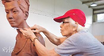 雕塑家為梅艷芳的雕塑作好準備。
