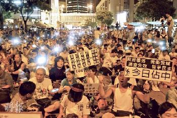 在警方發出警告及警力部署下,學民思潮帶領約300人,昨晚約11時由中環遊行到金鐘特首辦,其間一度與警方僵持。留守中環的人士坐滿整條遮打道,約800名“熱血公民”及部份戴面具市民,亦於匯豐總行對開集結。