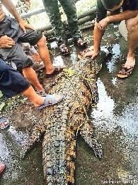 (中國)佛山一名69歲漁民在河中捕獲一條巨鱷,在當地引起一陣恐慌,擔心附近有鱷魚出沒。當地政府發佈緊急通知,要求當地民眾注意安全。被捕的鱷魚長達2.6米重80公斤,這名漁民經兩小時始將鱷魚電暈捕獲,隨後以2000元(人民幣,下同)出售。漁民稱3代在此捕魚,但從沒遇見過鱷魚。