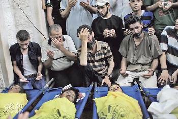 (加沙)以色列炮彈週三擊中加沙海灘,殺死4名正在踢球玩耍的漁家孩童,引發國際非議。事發沙灘就在外國記者落腳酒店附近,多名記者目擊及參與救援。死者家人斥責以軍冷血屠殺,以軍辯稱空襲沙灘是為了打擊哈馬斯武裝份子。分析指,今次事件在眾目睽睽下發生,將令要求國際社會,尤其是美國介入斡旋的呼聲增加。以色列與哈馬斯雙方昨日在埃及商討停火,以方人員一度放風稱達成協議,但以國外長及哈馬斯方面迅速否認。