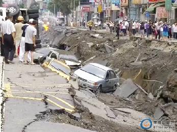 高雄市凱旋三路是重災區之一,警方清晨展開搜救,發現數百公尺長的路段好像被轟炸過一樣,出現深約一層樓的塌陷,至少8架消防車損毀。