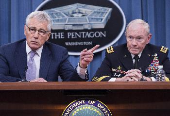 (美國)美國防長哈格爾與美軍參聯會主席鄧普西週四(21日)闡述伊拉克局勢及美國在中東反恐策略,鄧普西稱只有攻擊敘利亞才可擊敗伊斯蘭極端組織“伊拉克和黎凡特伊斯蘭國”(ISIS),暗示已準備好向總統奧巴馬提交更廣泛軍事打擊ISIS計劃。哈格爾亦表示,ISIS是迄今所見最強大恐怖勢力,美國會考慮所有打擊手段。分析指出,美國記者福利遭ISIS殘忍割頭,有助華府爭取民心擴大軍事出擊,可是不少國會議員仍憂慮美軍泥足深陷。