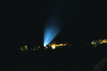 鍾鎮濤昨晚在酒店舉行派對與好友慶祝,從遠處山上看到有射燈。(圖:香港明報)