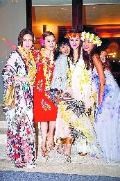 前晚主人家B哥與范姜於酒店舉行池畔Welcome party,由晚上8時開始,場內放了一張鍾家“Q版全家福”給來賓簽名留念,一眾美女以夏威夷女郎花花紗裙現身,不過張曼玉卻似乎未有穿上大會指定裝束,故與范姜、關之琳等合照時,就攝在她們之間,用花花裙遮住自己,非常搞笑。