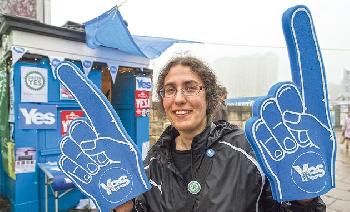 (蘇格蘭)蘇格蘭明天便舉行獨立公投,街頭選戰也開始白熱化,主要街道和廣場的街站明顯增加,偶然出現不同陣營人士在路上唇搶舌劍的情。儘管公投令蘇格蘭人分為獨立和統一兩大陣營,但無論平民百姓、學生領袖抑或學者,多深信社會不會因此撕裂。一對持不同立場的餐廳老闆夫婦便向本報記者笑言:“(週四投票後)週五就會沒事。”