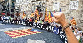 (蘇格蘭)蘇格蘭獨立公投剛過,但引發的漣漪已衝擊歐洲。西班牙加泰羅尼亞今日便緊接蘇格蘭公投手為獨立公投準備,今日預料通過法案為11月9日獨立公投鋪路。西班牙政府早揚言公投違憲,並以暫停加泰羅尼亞自治權作威脅,憲政危機一觸即發。事實上,歐洲對蘇格蘭獨立公投的衝擊後知後覺,低估蘇獨公投對各地自治訴求的激化。