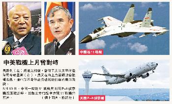 (中國)中國海軍總司令吳勝利上將昨日在美國羅德島(Rhode Island)參加海上力量研討會時,談及上月美國偵察機逼近中國沿海偵察事件說,美方指控中國機師挑釁、不專業的說法“毫無根據”,只要美國繼續對華偵查,中國就不會停止攔截,又強調不希望2001年中美撞機事件重演。