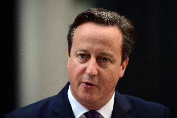 英國首相卡梅倫昨在首相府外對蘇格蘭獨立的公投議案被否決表示歡迎,並稱會同時向蘇格蘭、威爾士和北愛爾蘭放權。(圖:法新社)