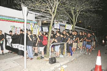 無線職員協會昨晚於電視城外發動黑衣默哀行動,抗議早前公司裁員50人。(圖:香港明報)