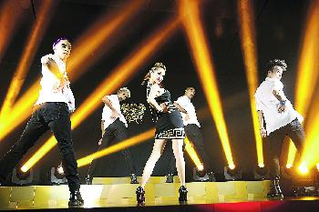 Jolin穿上連身的透視裝,胸前的閃閃bra扣若隱若現,非常性感,但性感之最卻是蜜運中的吳雨霏,她只穿上黑bra配皮褸,性感程度令人嘩然。