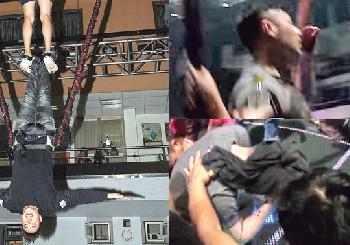 工作人員趕緊將他送院,發現他頭皮有長達17cm的撕裂傷,併發腦震盪,立即進行兩次頭皮縫合,估計他因鍛煉高空特技,反覆練習數十次後,因體力透支、重心不穩而發生意外,頭部受到嚴重撞擊。