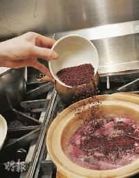 步驟2:下紅麴米,略煮,備用。(圖:香港明報)