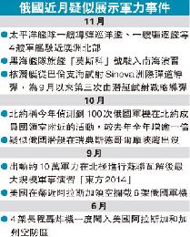 俄國駐坎培拉大使館發言人昨表示,俄國太平洋艦隊正測試續航力,以便隨時前往南極研究氣候變化,亦可在必要時保護普汀,屬常規演習。他強調,俄艦隊並無違規,不應被視為危機。俄國近期軍事動作連連,繼軍機屢闖歐洲國家領空後,俄國防長紹伊古(Sergei Shoigu)週三表示,將派長程戰略轟炸機,定期巡邏北冰洋、加勒比海及墨西哥灣等範圍。另計劃年底前確保雷達全面覆蓋北極地區,稱要回應北約與外國軍力威脅。