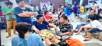 電視畫面截圖顯示,強震發生後,一些傷者到醫院求醫。這次地震迄今未傳出重大傷亡或財物損失。(圖:新華社)