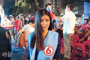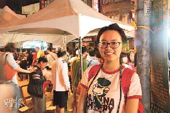 柯文哲的支持者邱曼婷神情興奮地說:“這次也是學生開始作主了。太陽花運動讓學生覺醒了。”(圖:香港明報)