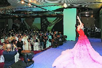 新娘子馮翠珊睇準容祖兒的位置,將花球擲向祖兒,讓她接住。
