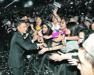 華仔在台下大受粉絲歡迎,個個爭住握手。