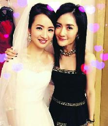內地女星謝娜(右)在婚宴上向新娘林依晨(左)送祝福。(網上圖片)