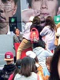 JJ昨午在西門町電影街舉行《新地球》簽唱會,其間有一名身材高大的男子突然衝上台,向JJ的臉揮了一拳。JJ當場嚇呆,10分鐘也說不出話來,用手按住耳朵喊痛。工作人員即時送他到台大醫院驗傷,經診斷他的左耳挫傷,並要觀察72小時是否受腦震盪。