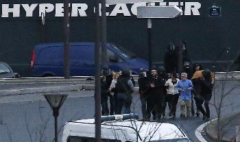 (法國)法國雜誌社恐襲案昨演變成雙重人質危機,首都巴黎氣氛空前緊張。血洗《查理週刊》的兩名疑犯在巴黎東北市郊藏身一間印刷廠與警方對峙,挾持最少一名人質,與此同時,最少一名兇徒攻入巴黎市東一間猶太人超級市場,挾持多名人質。法國特種作戰部隊人員在香港時間午夜時分兵分兩路發動攻擊,襲擊雜誌社的兩兄弟及超市鎗手均遭擊斃,可是超市內最少4名人質被殺。