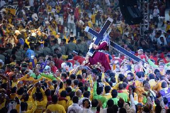 (菲律賓)菲律賓昨舉行一年一度的“黑耶穌節”(Black Nazarene)巡遊,數萬計天主教徒參加。信徒爭取觸摸及親吻黑耶穌像,祈求好運。