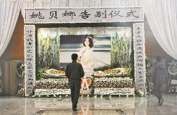 (中國)內地女歌手姚貝娜於1月16日因乳腺癌復發在北京大學深圳醫院病逝,終年33歲,她捐眼角膜遺愛人間。昨早上9時許,姚貝娜遺體告別禮在深圳市殯儀館舉行,父親與《我是歌手》的導師那英致悼辭時哭別姚貝娜。逾千人聚集場外送她最後一程,有人手持鮮花,送往致祭的花圈將現場變花海;有歌迷拉橫額“你是我最短暫的花朵也是我最長久的琥珀”。