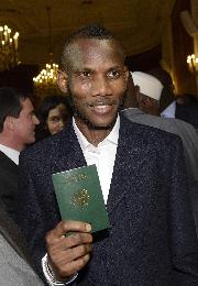 24歲馬里裔穆斯林巴蒂利(Lassana Bathily)週二在總理瓦爾斯等官員見證下,從內政部長卡澤納夫手裡接過總統奧朗德的親函、一枚獎章和一本護照。