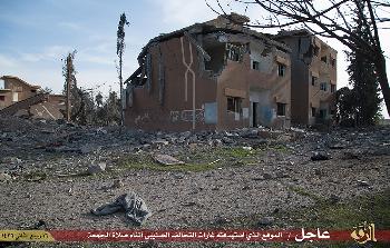 ISIS聲稱約旦戰機空襲導致美國女義工米勒被殺,並公開照片展示米勒藏身處變成頹垣敗瓦,但無展示米勒屍體。(圖:法新社)