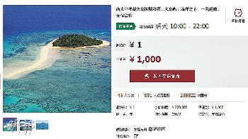 《現代快報》報導,前日上午10點,淘寶網拍賣會專區的“全球稀有海島拍賣專場”開拍4個海島,分別是斐濟第二大島“海洋之心”、加拿大戴德門島、希臘玲瓏萊斯島、蘇格蘭帝王之師島。除已開發的帝王之師島起拍價為400萬元外,其餘3個島起拍價僅1元。拍賣方稱,這些海島都有私人業主,不涉主權。除海洋之心拍賣89年租賃產權外,另外3島出售永久產權。