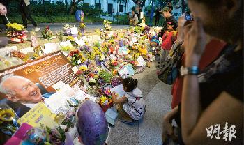 新加坡總理府昨早發佈通告稱李光耀病情惡化。消息傳出後,有更多帶備鮮花及慰問卡的當地民眾湧至中央醫院,望能向這位建國之父表達敬意。醫院方面特意撥出小廣場,給民眾擺放物品致意;到傍晚更搭起藍白色的大型帳篷,為鮮花及紀念卡遮風擋雨。