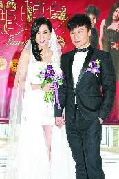 鍾嘉欣與方力申穿上婚紗與禮服,變身新娘新郎預演婚禮。(圖:香港明報)