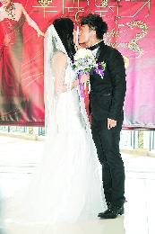(香港)鍾嘉欣、方力申、汪明荃及岑麗香昨日宣傳無綫劇集《華麗轉身》。阿姐獲安排與穿上價值10萬港元婚紗的鍾嘉欣乘馬車到達禮堂,方力申則穿上禮服,與劇中戀人鍾嘉欣預演婚禮,不過兩人表現尷尬,當眾親嘴時更要隔著膠片,十分搞笑。
