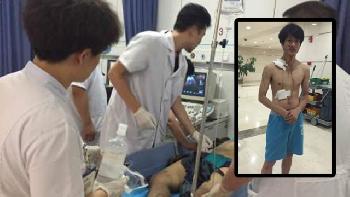 爆炸發生後,小姜一家4口中,有3人受傷,其母親因被玻璃扎進身體未能取出,入住重症監護室。小姜(小圖)也因受傷而住院,但因醫院的麻醉藥用完,他被迫在沒麻醉藥的情況下,“生縫”12針。(互聯網照片)