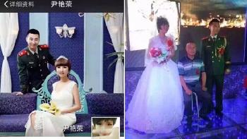 殉職消防員尹艷榮與新婚妻子的結婚照,其妻已懷有身孕。(互聯網照片)