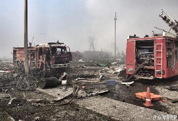 在爆炸中心有7至8輛消防車被炸毀,車內遺留的對講機上,還不斷傳來其他隊員的聲音。