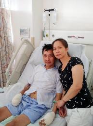 鍾雪梅憶述:“醫生說他或隨時會走,但他的体質好還有希望,要我回家帶兩個孩子來為他加油打气。"雙腳可能也要截肢