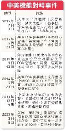 (美國)美國國防部週二證實,美軍一架RC-135電子偵察機本月15日在距離山東半島海岸約128公里的黃海上空,遭2架中國“飛豹”戰機攔截,雙方一度“危險接近”。美方稱事件尚在調查中,但無迹象顯示雙方險些相撞。外交部回應稱“不瞭解事件”,但昨日傍晚起,相關報導已在內地新聞網站上被刪除。此事件公佈時機正值國家主席習近平訪美,中美軍方亦會商議一旦兩國軍機意外相遇,應如何應對的規則。