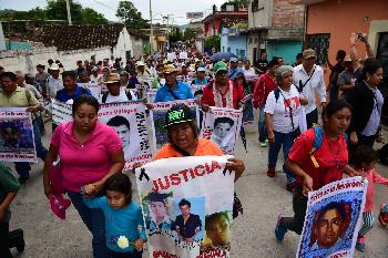失蹤學生的父母北上參加示威,並在遊行前絕食43小時以示對孩子的愛意。失蹤事件發生於去年9月26日,官方調查指,這批來自一所教育學院的學生參加一場示威後,遭地方警察襲擊並擄走,交給一個黑幫殺害焚屍。當局發現多個懷疑埋葬學生殘肢的亂葬崗,迄今只辨認了一名死者身份。學生家長及人權組織質疑官方說法。(香港明報)