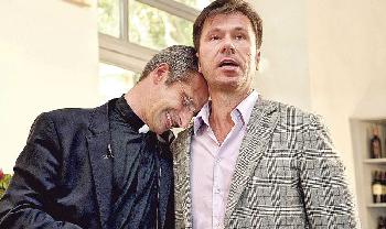 • 梵蒂岡世界主教大會前夕,在教廷工作的波蘭神父查倫薩(左)與同性伴侶“出柜”,挑戰教會“偏執”,隨即被開除。(圖:法新社)