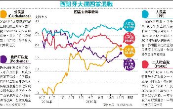 (西班牙)西班牙今日迎來佛朗哥獨裁時代結束40年以來最不明朗的大選,兩股新勢力冒起,令兩大傳統政黨面臨巨大挑戰。首相拉霍伊領導的人民黨儘管民望領前,但遠遠不足以取得過半國會議席。另一傳統政黨工人社會黨的票源受激進左翼政黨“我們可以”蠶食,主張自由派經濟政策﹑大打反貪牌的公民黨近月聲勢大振,黨魁民望更居各黨領袖之首,或將成為這次大選的“造王者”。